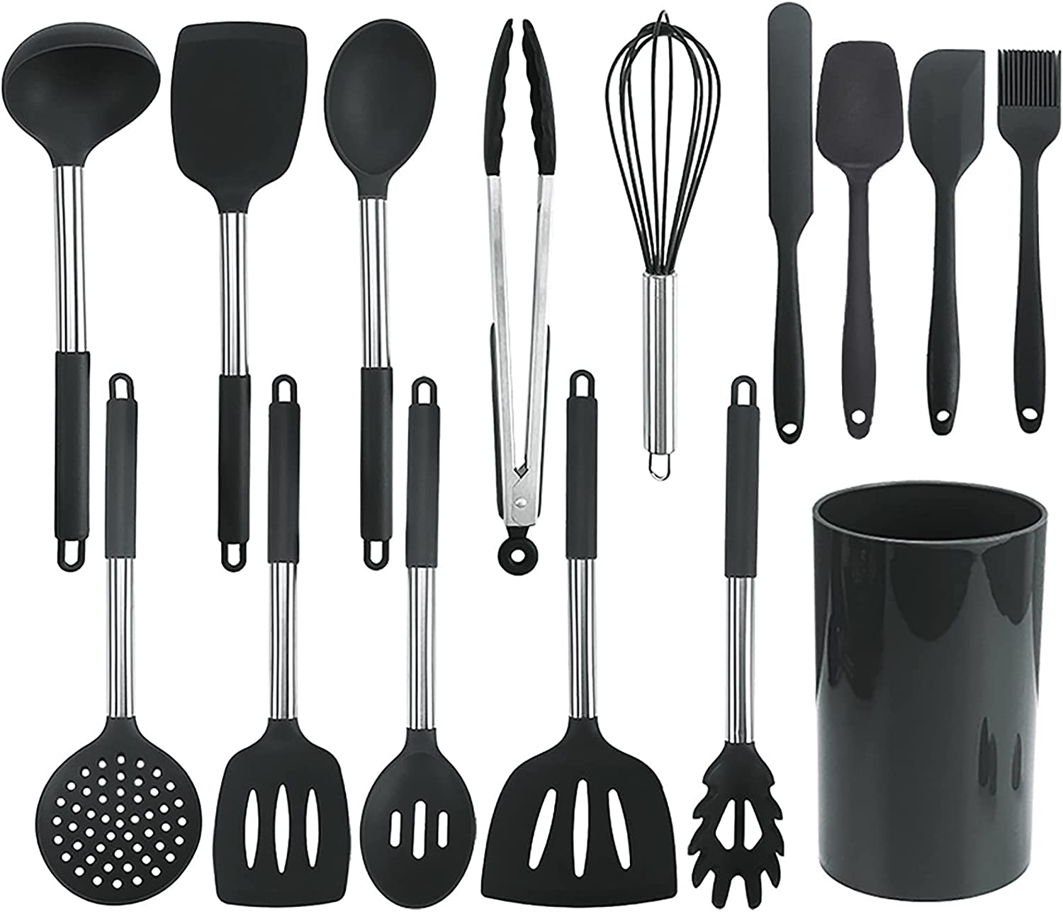 Professional Kitchen Utensil Set: The Kitchen Cooking Utensils includes Spatula Frying spatula Spoon Small spoon Colander Spaghetti Scraper Salad spatula Whisk Food tongs Oil brush Let you feel satisfied for any kitchen needs.