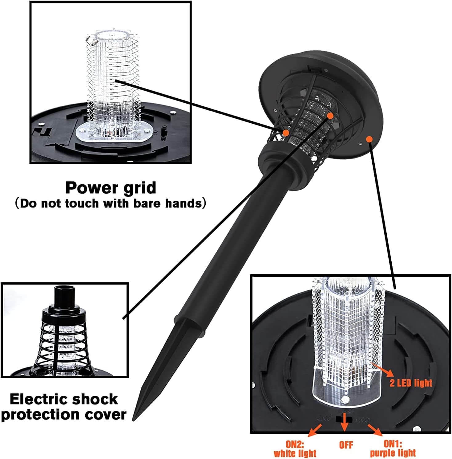 Automatic Sensor Solar Powered Insect/Bug Zapper/Repellent Two Light Modes - White LED Light & UV Light No Wires, No Electricity - Easy to Install Dusk to Dawn Sensor No Chemicals, No Fumes & No Sprays Weather Resistant Environmental Friendly