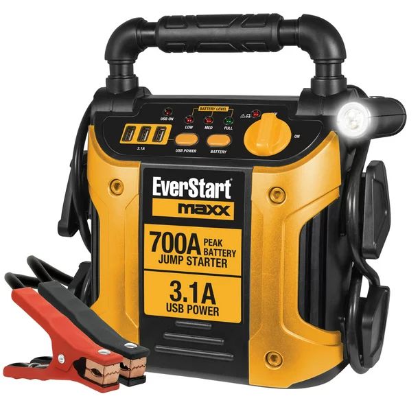 Get practical, portable power with the EverStart Maxx J309ES 700 Amp Jump Starter. Featuring integrated, powder-coated metal clamps, it’s powerful enough to start most 4 and 6-cylinder vehicles instantly. The triple USB ports allow you to change multiple personal electronics at the same time. With a safety switch and reverse polarity alarm, the EverStart Maxx 700 Amp Jump Starter is user-friendly and great for everyday drivers.