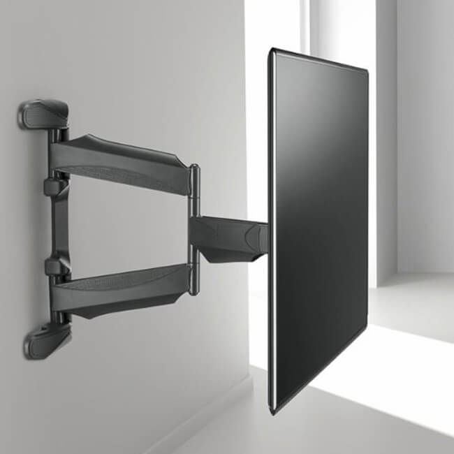 Place your screen where everyone can see it in the home or in a place of business using the Ematic Full Motion TV Wall Mount Kit with HDMI Cable for 19" - 70" Displays. Made of a sturdy and durable aluminum alloy, it supports models measuring up to 70" and weighing as much as 88 lbs. Compliance with VESA 400 x 400 mounting standards makes this a versatile full motion TV mount. Hinges allow for a 12-degree tilt range, providing a clear viewing angle based on the height of the installation.
