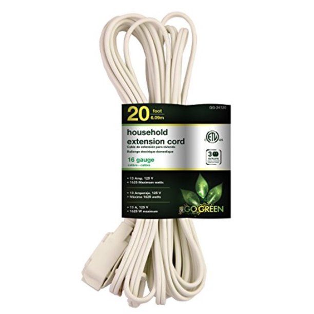 The gogreen power 20’ household extension cord is great for indoor use in the office and at home. safety covers conveniently cover unused outlets. cord is industry approved and is etl listed.
