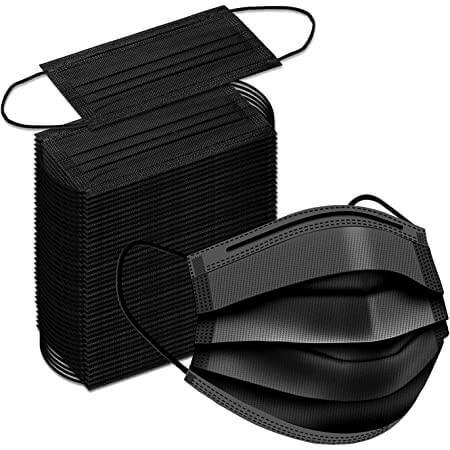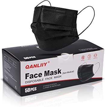 Black Disposable Face Masks, 3-ply Breathable Masks, Elastic Ear Loop Mask - Black Color Pack of 50
