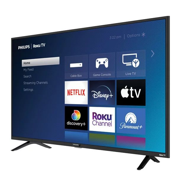 Quick overview: With a simple home screen, easy-to-use remote and automatic software updates, this Philips 43" Class FHD (1080p) Roku Smart LED TV is a smart TV that’s simple to use and easy to love. Quickly access your cable box, satellite, HDTV antenna, and favorite streaming channels—all from your home screen. Experience 1920x1080 Full HD resolution with flicker-free technology for a more brilliant entertainment experience. Search by title, actor, or director to see where to stream your favorite shows for free or at the lowest price.