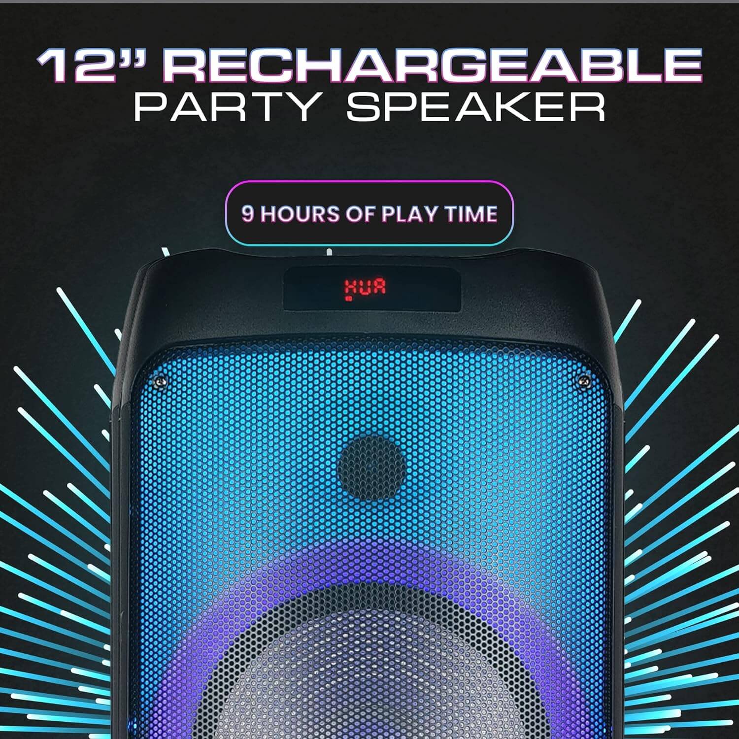 Quick overview: Professional outdoor speaker with strong and powerful serious. With mango and wheels. Bluetooth, USB, TF, FM or Aux connectivity with bass and acute controls. Incorporated amplifier, graphic equalizer, 12 -inch dual woofers and 3 -inch tweeters. LED lights activated by sound with 7 different modes that will make your guests dance. For Karaoke, parties in the backyard, DJ. Two 1/4 "microphone connectors with volume and echo controls